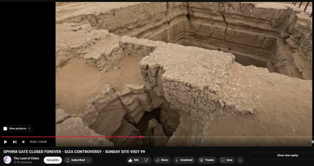 ABOVE: Suspected entrance to subterranean passage(s). Giza Complex is theorized to have hundreds possibly thousands of deep shafts, underground passages, mineral veins, troughs, pipings.